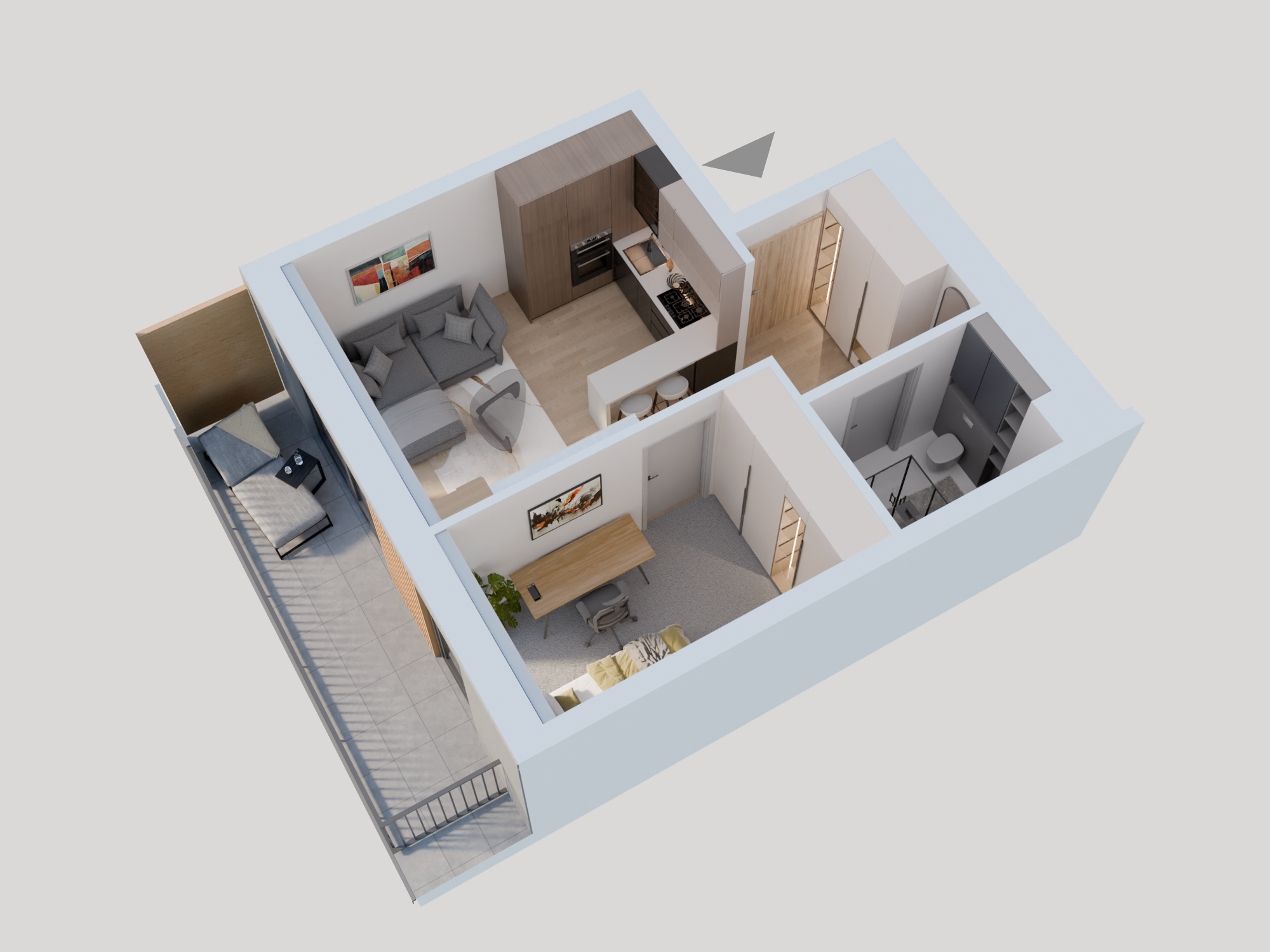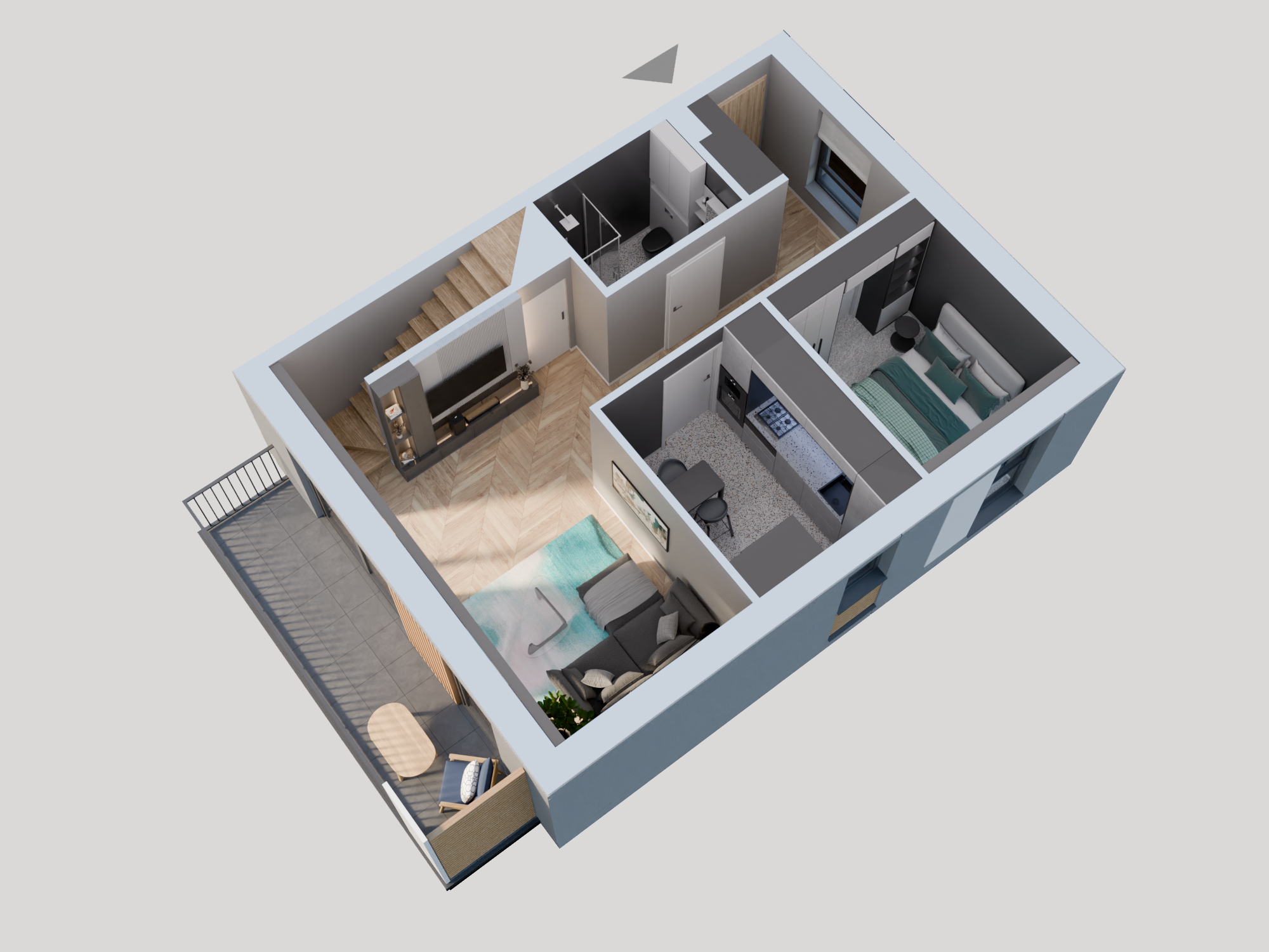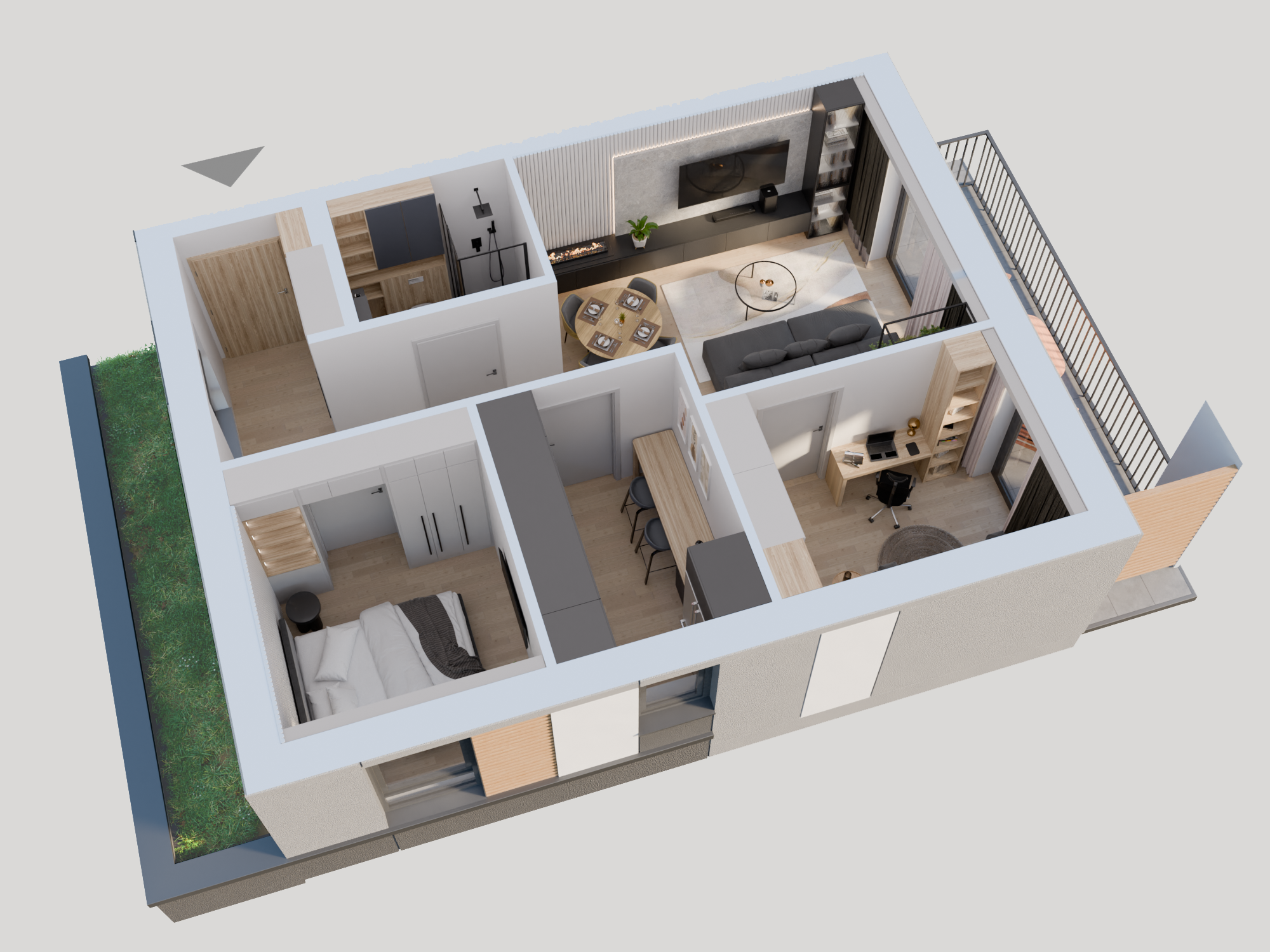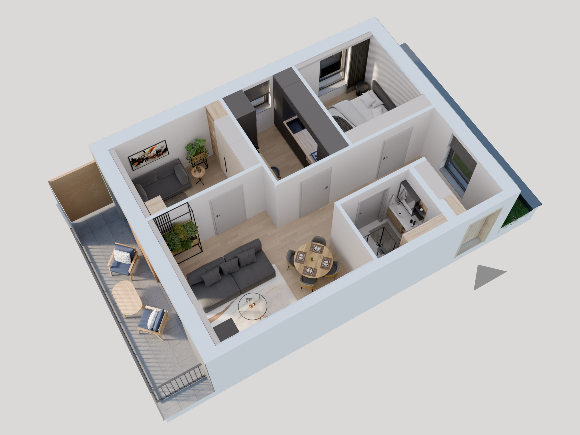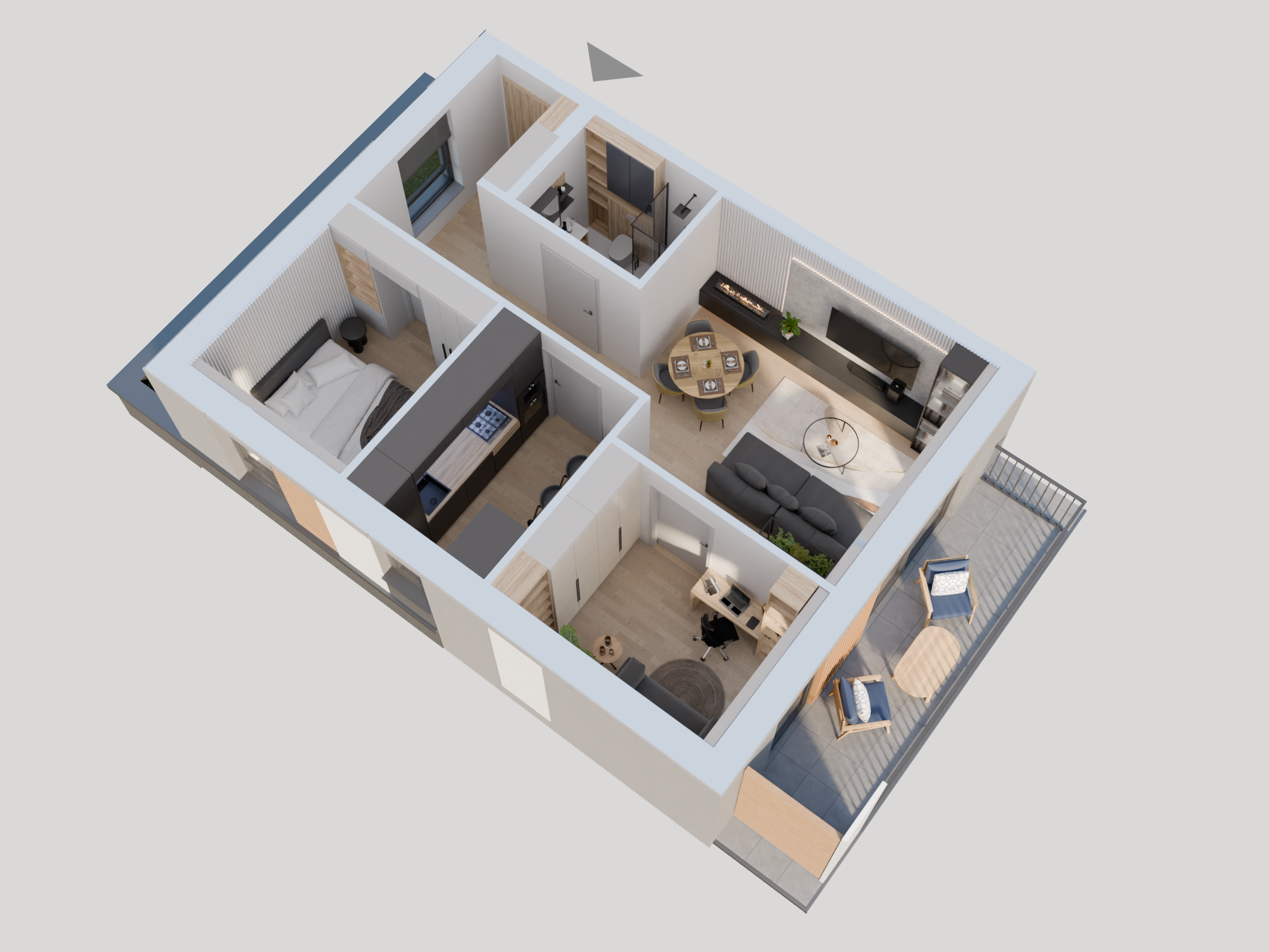 Aranżacja i wizualizacje rzutów 3d mieszkań w budynku wielorodzinnych na ul. Dulęby w Lublinie, autor projektu budynku: pracownia AKJ architekt Krzysztof Jaraszkiewicz