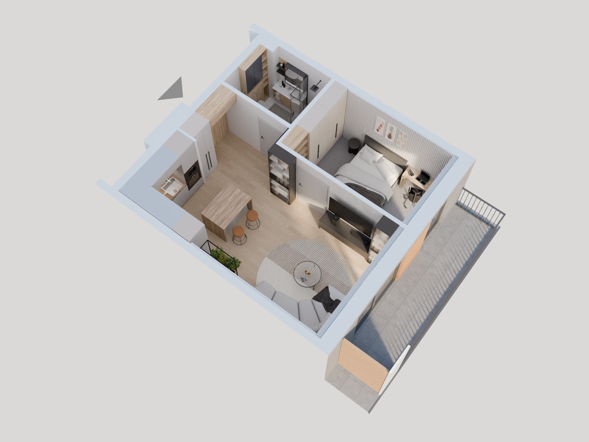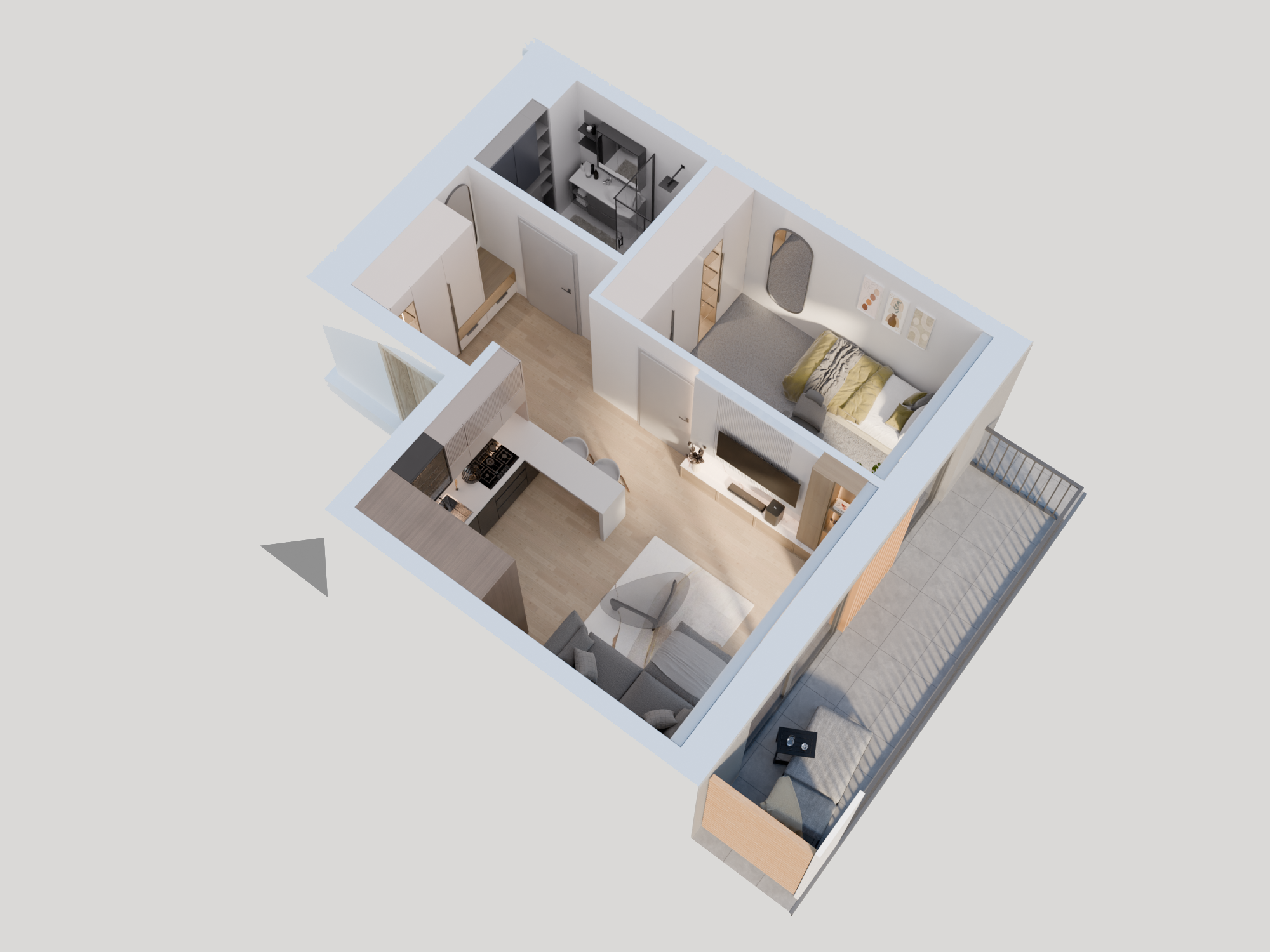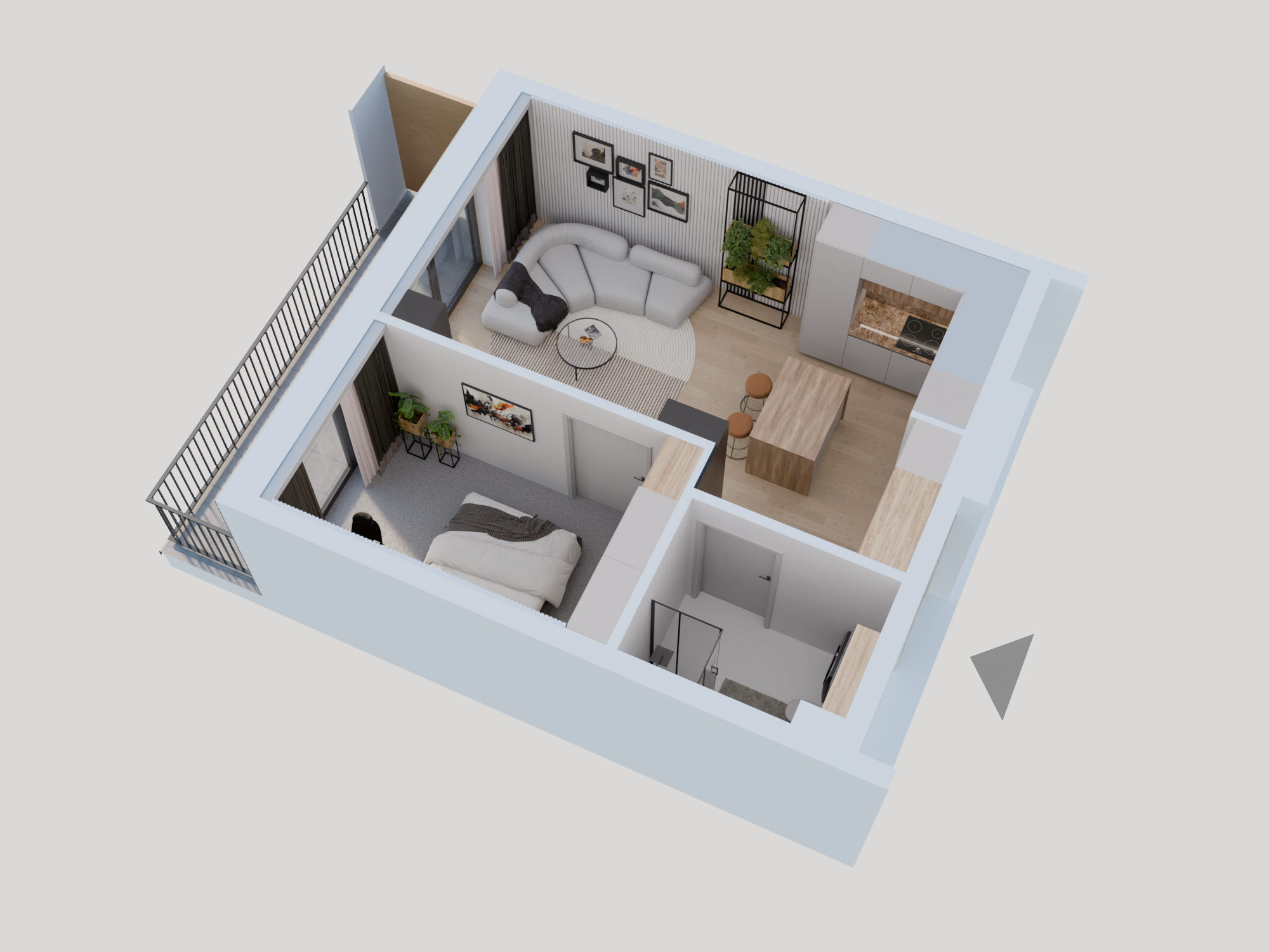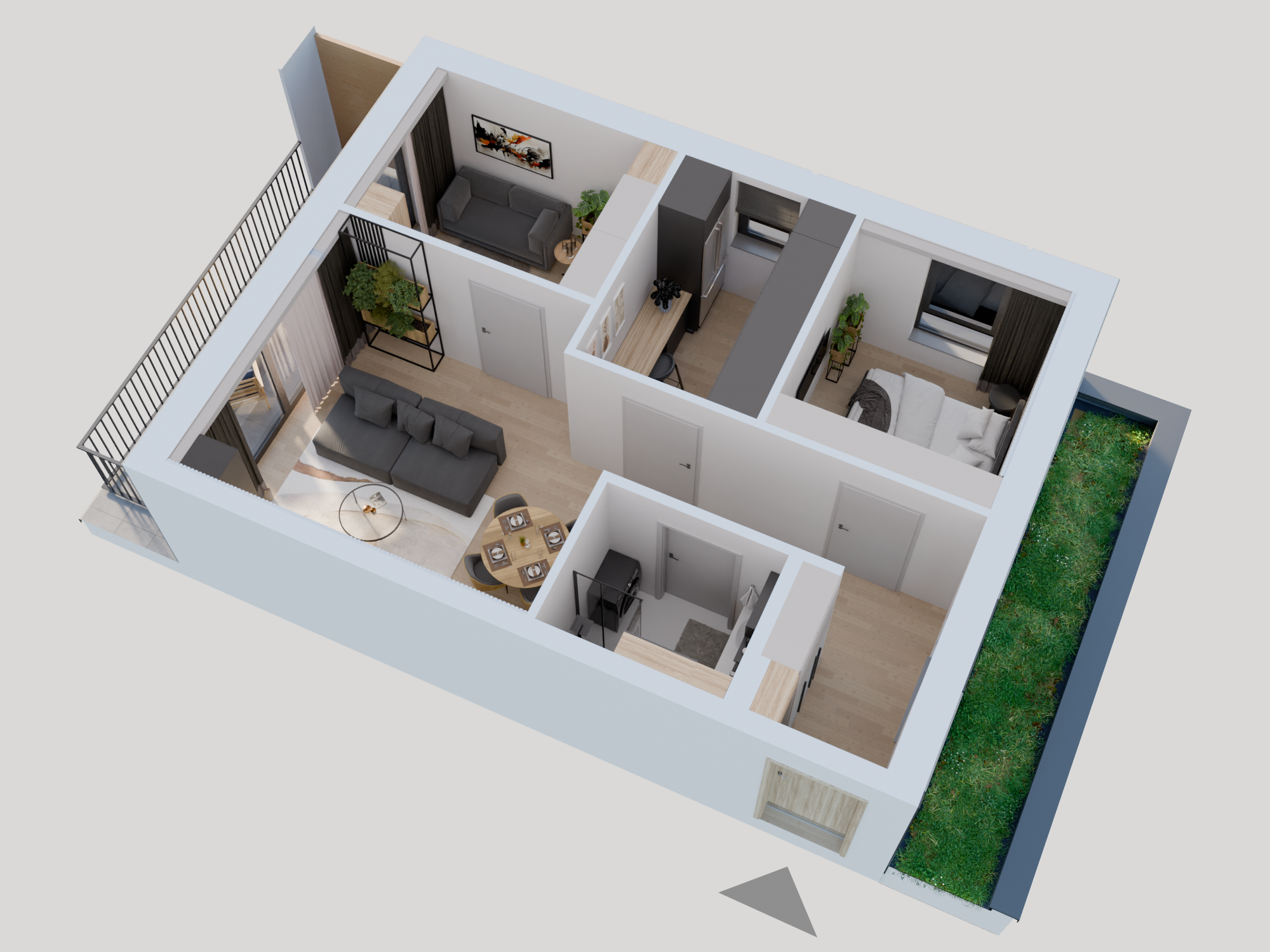 Aranżacja i wizualizacje rzutów 3d mieszkań w budynku wielorodzinnych na ul. Dulęby w Lublinie, autor projektu budynku: pracownia AKJ architekt Krzysztof Jaraszkiewicz