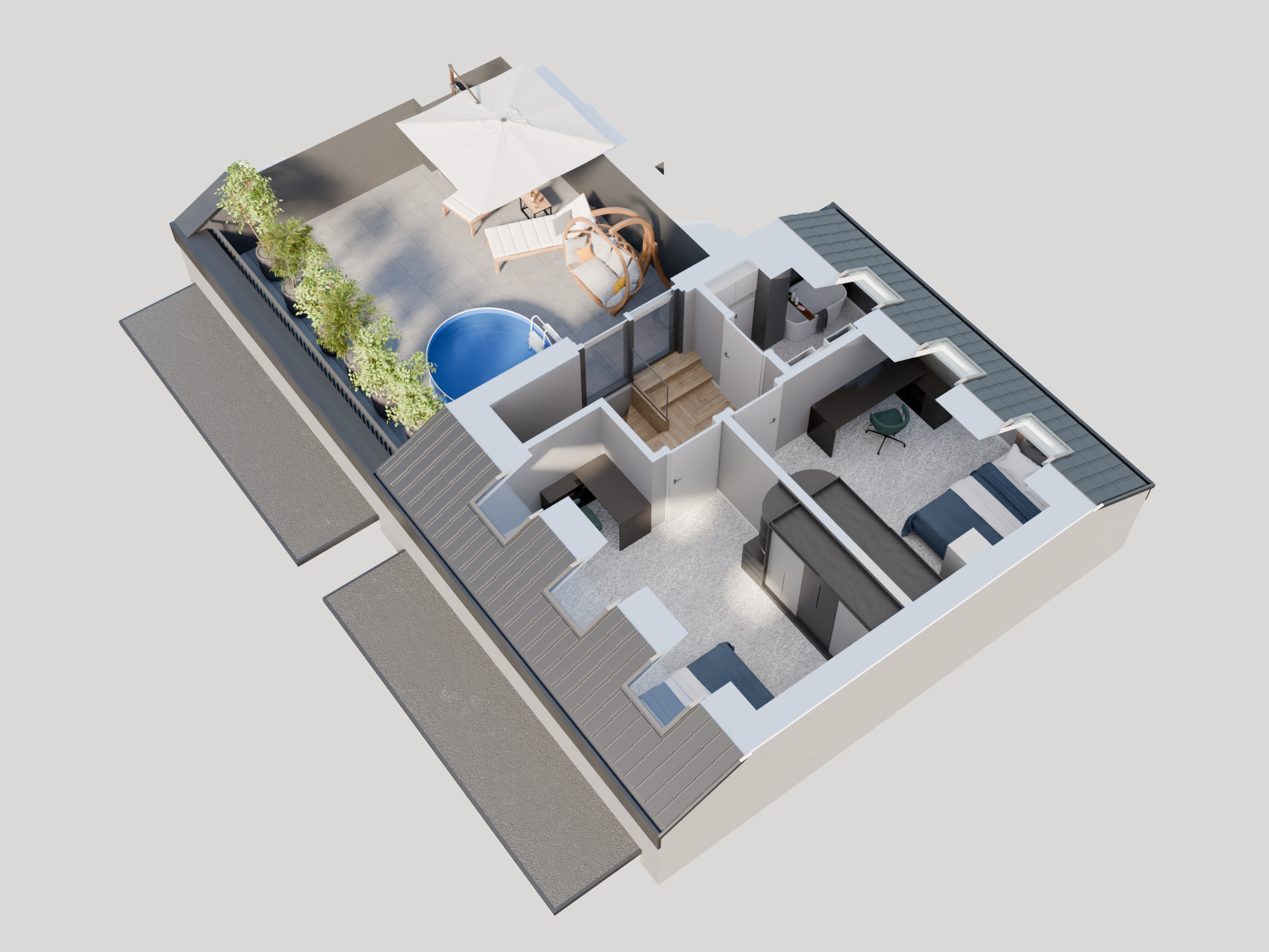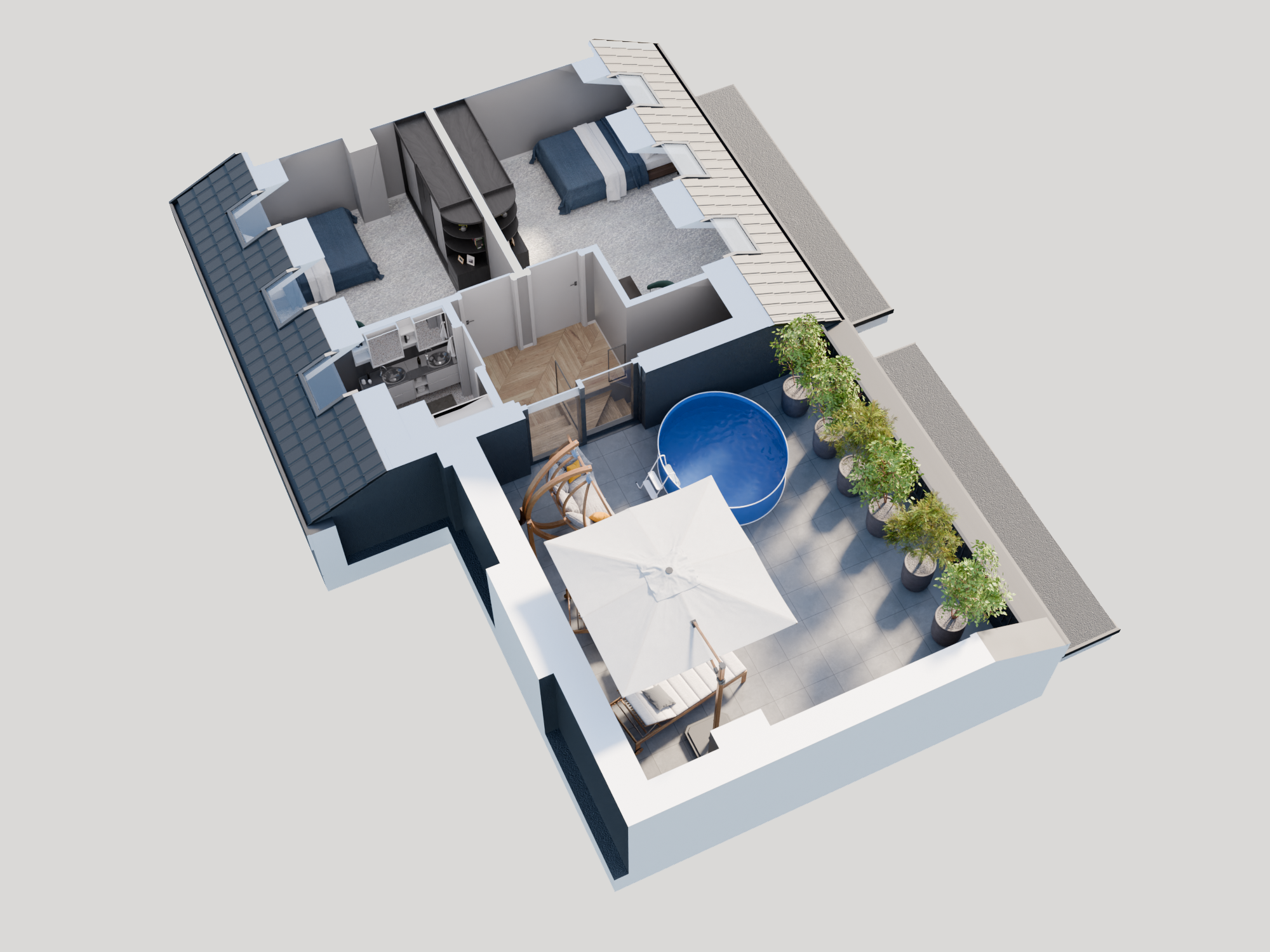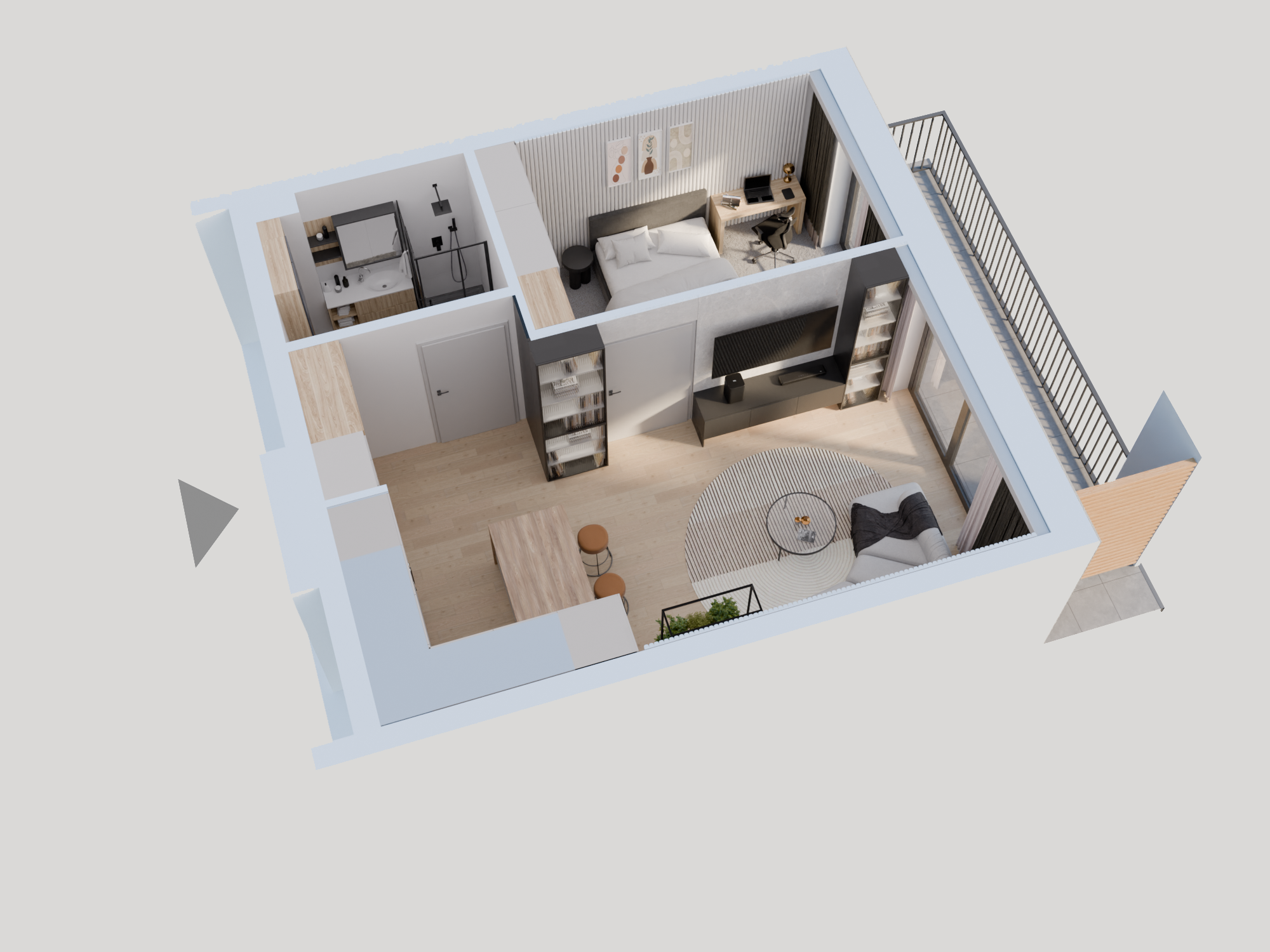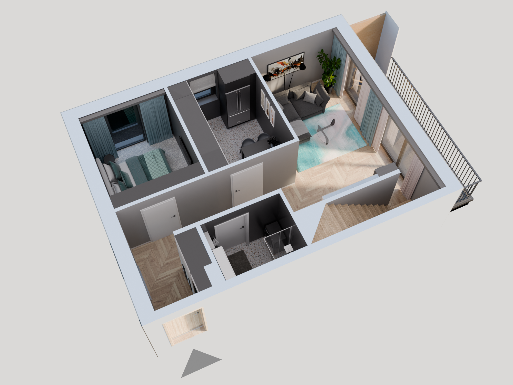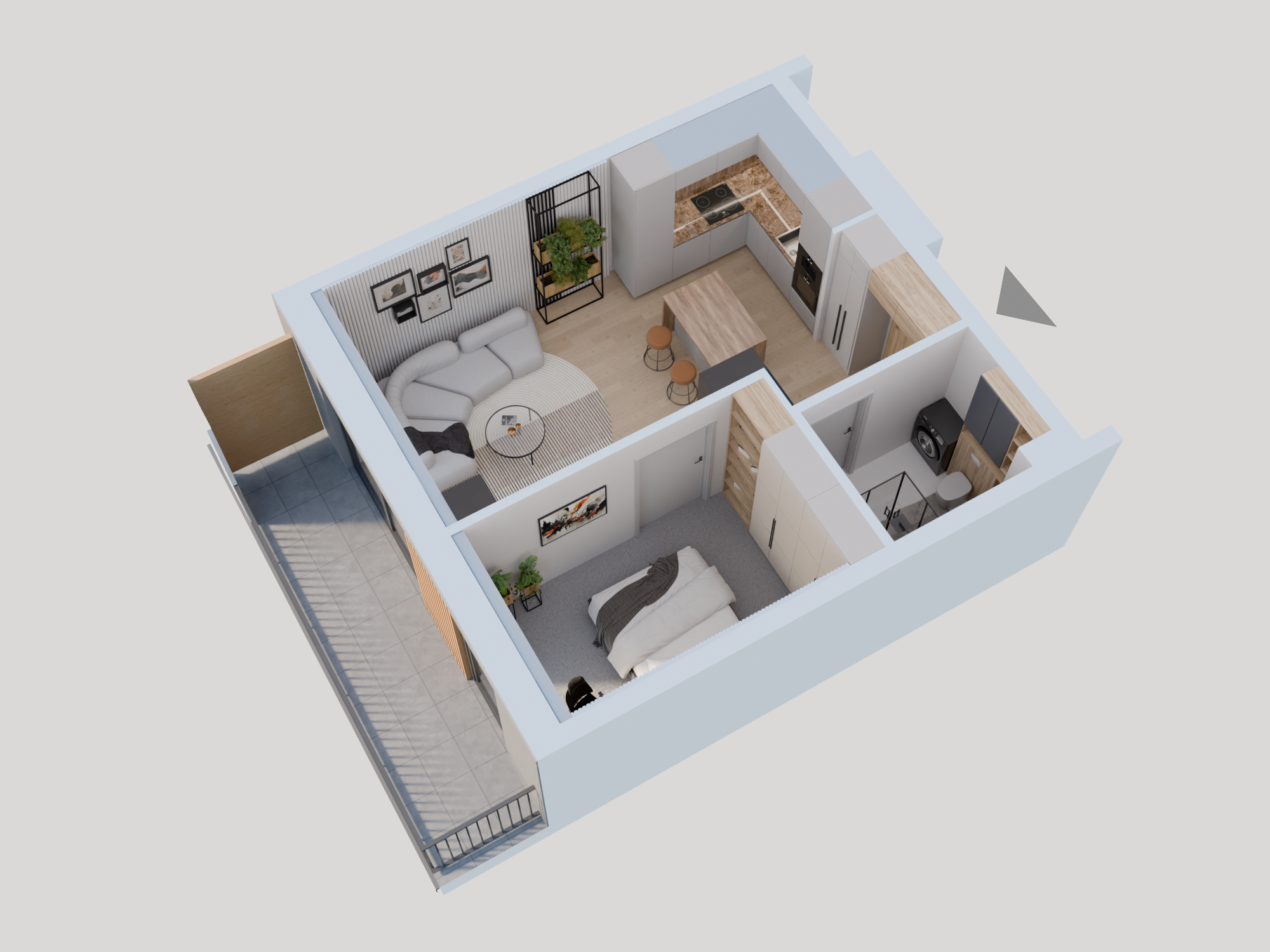 Aranżacja i wizualizacje rzutów 3d mieszkań w budynku wielorodzinnych na ul. Dulęby w Lublinie, autor projektu budynku: pracownia AKJ architekt Krzysztof Jaraszkiewicz